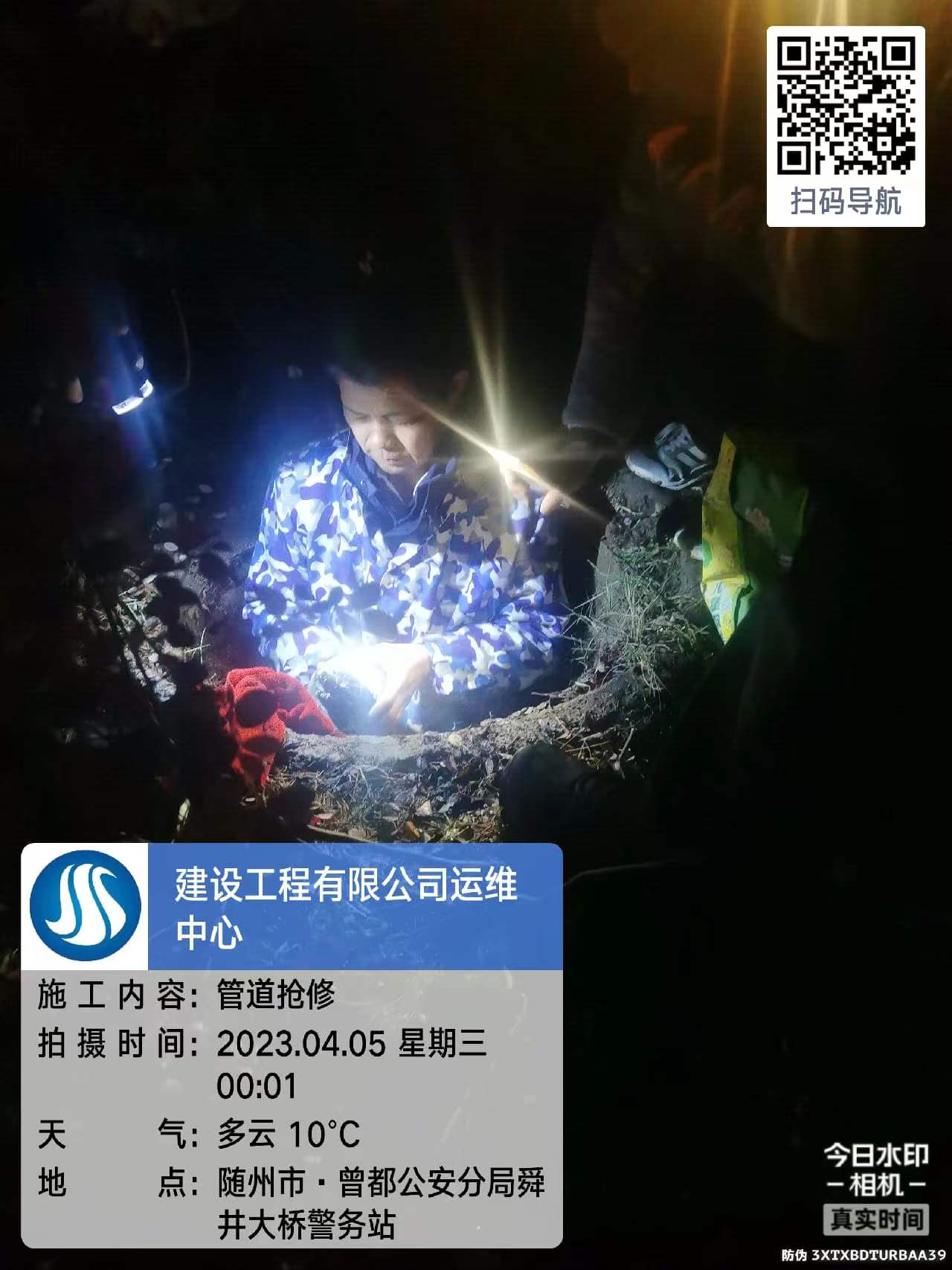 夜幕里,在探照燈燈光的照射下,為盡快修復(fù)供水管道,縮短停水時間,敲、拆、補、焊、聽......搶修隊伍一刻不停,緊張地忙碌著。夜晚春風(fēng)微涼,他們的衣服被汗水浸透卻也渾然不覺。經(jīng)過連續(xù)3個多小時的奮戰(zhàn),搶修人員終于在翌日凌晨三點半順利修復(fù)了破損管道,恢復(fù)了通水,圓滿完成了搶修任務(wù)!