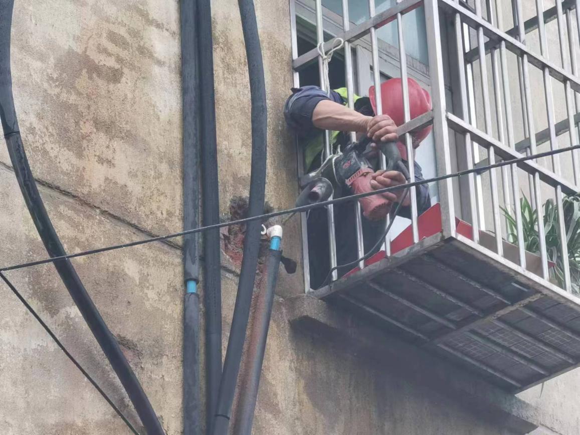 “這里水管漏了,外面的墻都打濕了,麻煩你們快來看看啊!”3月20日上午8點(diǎn)30分,建設(shè)工程公司接到市民的求助電話,稱他家墻外有根水管在向外冒水。運(yùn)維中心牽頭人張遠(yuǎn)燈立即安排維修人員第一時(shí)間趕往現(xiàn)場(chǎng)。經(jīng)過詢問和現(xiàn)場(chǎng)查看后,發(fā)現(xiàn)事故原因是2樓外墻進(jìn)屋處彎頭漏水,但該項(xiàng)維修內(nèi)容本不屬于公司的維修范疇。維修人員看到無助的老人,便毫不猶豫地爬上2樓陽臺(tái),在狹窄的空間內(nèi)艱難地為老人更換破損管件。雖然是用戶房屋內(nèi)部管道漏水,水務(wù)人本著想用戶所想,急用戶所急的服務(wù)精神,不計(jì)較、不推諉的幫助用戶及時(shí)解決漏水難題。