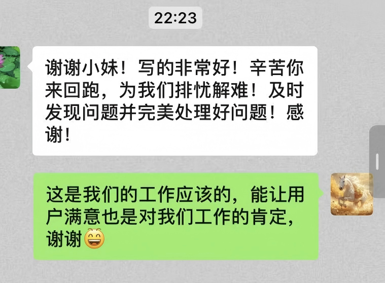 這位用戶表示,要將隨州水務(wù)員工的專業(yè)與熱情分享給身邊人,直言“你們工作時熱情的態(tài)度值得我們學習”。面對用戶的盛贊,網(wǎng)格員一句“你再表揚我就要飄了”的俏皮回應(yīng),讓這場服務(wù)與被服務(wù)的互動更添溫情。